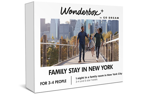 About “Family Stay in New York” gift: A trip to New York is great. But a family getaway in New York? Even better! Imagine the kids’ eyes lighting up in Times Square, your parents smiling as they stroll hand-in-hand through Central Park, your sister in awe at a Broadway Show… Whatever the tastes or ages, this experience gift is a grand surprise that will delight everyone. To make the surprise a true success, our team created the “Family Stay in New York” gift box — a gift idea designed to take your whole crew on a one-of-a-kind, unforgettable adventure! Thanks to our carefully selected family-friendly hotel partners, your loved ones can stay in a star-rated hotel in the heart of the Big Apple — with maximum comfort and a perfect location to explore the must-see New York landmarks: Times Square, Central Park, the Statue of Liberty… Everything you need for a magical family stay in New York. Perfect as a shared Christmas gift, a birthday surprise, or for any special occasion, this Wonderbox experience gift in New York promises a timeless weekend, ideal for bringing the family closer together and creating lifelong memories. What happens on the day ? The moment the box is opened, your loved ones jump for joy — they’ve just received a family escape to vibrant New York, with its iconic skyscrapers and buzzing neighborhoods. Once the excitement settles, it’s time to plan. Thanks to our easy-to-use online booking platform, they can select the perfect travel dates, hotel, and room type… for a fully personalized family stay in New York. Departure day is filled with anticipation: suitcases packed, passports in hand, smiles all around… The countdown to the family adventure begins. Upon arrival in the Big Apple, your loved ones discover their hotel — designed to welcome families with ease: connecting rooms, family-friendly services, and all the comfort needed for a stress-free stay. Then, it’s time to create the perfect itinerary: bike rides through Central Park, visits to fun museums like the MoMA or the Natural History Museum, ferry rides to see the Statue of Liberty, street food in Brooklyn, shopping sprees on Fifth Avenue… Each experience becomes a chance to create unforgettable family memories. With Wonderbox, gifting a family getaway to New York means giving more than just an experience gift — it’s giving the joy of living magical moments together, again and again.