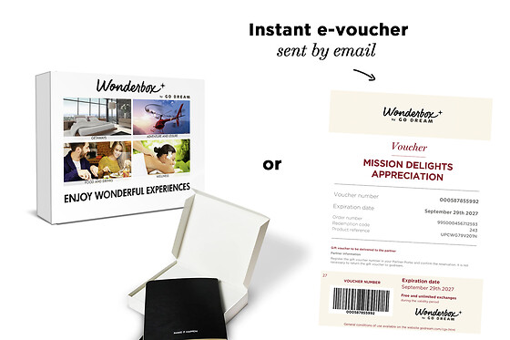 A Wonderbox experience gift is a multi-choice voucher to enjoy an activity. At Wonderbox we believe in gifting experiences, not material things. Founded in 2005, we have always strived to provide people the opportunity to experience their lives and share the adventures through our unique gifts – experiences in a gift box. We offer experiences on 5 themes: Getaways & City break, Food and drinks, Adventure, Wellness and Culture & Leisure. Wonderbox experiences are valid for 5 years so they make perfect gifts! HOW DOES WONDERBOX WORK?