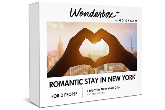 About the "Romantic Stay in New York" gift box: What could be more romantic than a romantic weekend in one of the most beautiful cities in the world? With our "Romantic Stay in New York" gift box, offer your partner or your favorite couple an exceptional and unforgettable experience for a romantic stay in New York. Much more than just a surprise, this gift idea for couples invites you to live a true love story in the heart of New York City, one of the most iconic cities in the world. Giving this gift box means offering the chance to walk hand-in-hand through the city's legendary streets, enjoy a romantic dinner at a chic restaurant, or get lost in the magic of Central Park. Whether you're celebrating an anniversary, Valentine's Day, a honeymoon, or simply the desire to reconnect as a couple, this gift box guarantees magical memories in the Big Apple! What happens on the day ? At Wonderbox, we know that a romantic getaway should be unique… and unforgettable! That’s why our "Romantic Stay in New York" gift box allows you to customize every detail of your getaway, offering your partner or loved ones the ideal experience: The hotel: Choose the place that suits you for an extraordinary romantic stay in New York. Whether it's an elegant hotel or a more intimate retreat, this gift idea offers accommodations for every type of couple! The room: Romantic suite or room with a city view, the possibilities are endless for your romantic stay in NYC! The little extras that make all the difference: Add extras like breakfast in bed, a candlelit dinner, or special activities to make each moment even more magical! The cherry on top? The booking is simple and quick! In just a few clicks, you can reserve your romantic getaway in New York, and organize every detail of your escape with no stress. In short: a gift box that allows you to offer your loved one a tailor-made experience, making every moment spent in New York an unforgettable memory!