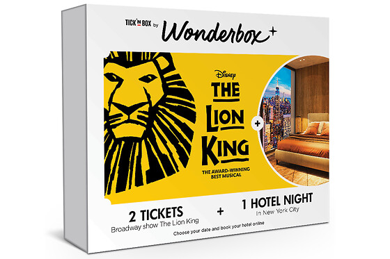The beautiful box includes:+ prepaid voucher to redeem 2 open tickets for The Lion King + One hotel night in NYC.+ notebook to keep memories of the unforgettable experience.
