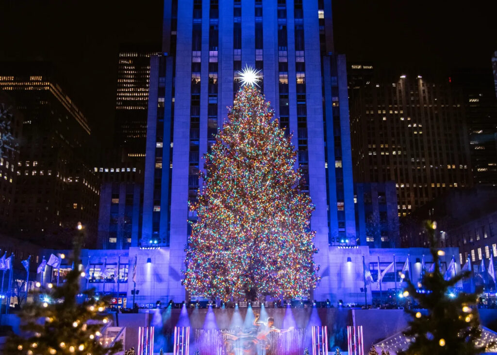 During winter, don’t miss the chance to ice skate beneath the famous Christmas tree.